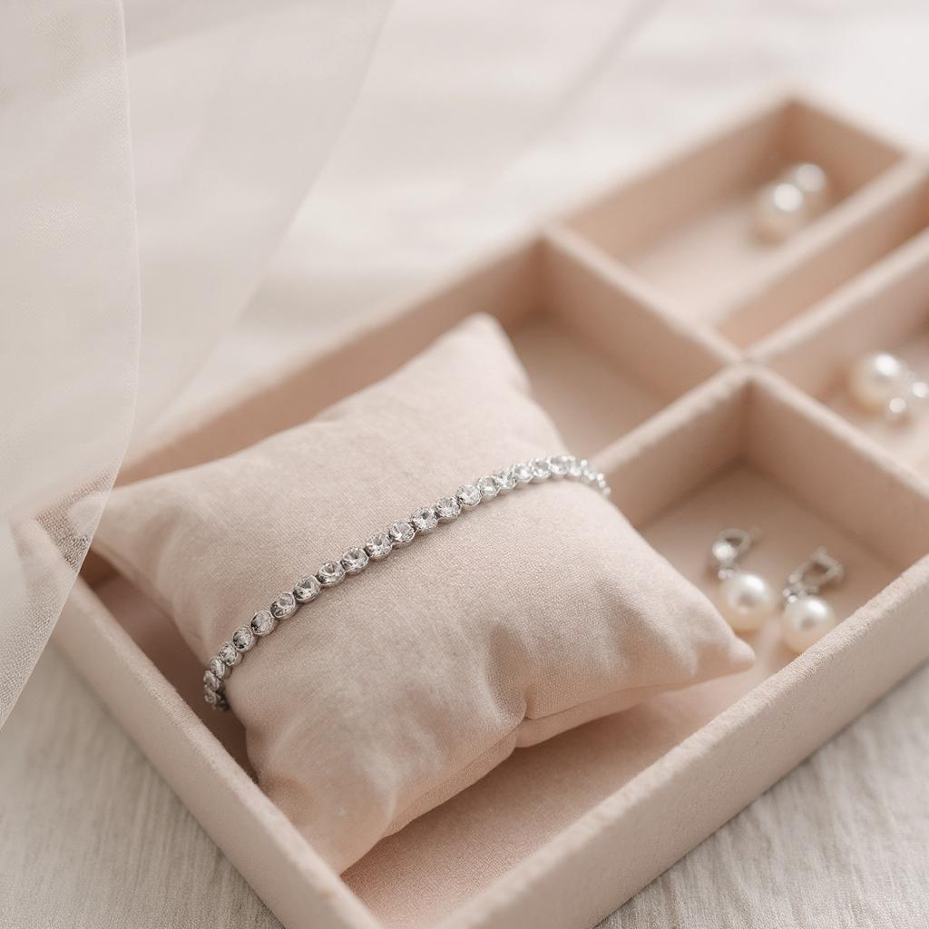 - Stones: Clear round-cut cubic zirconia