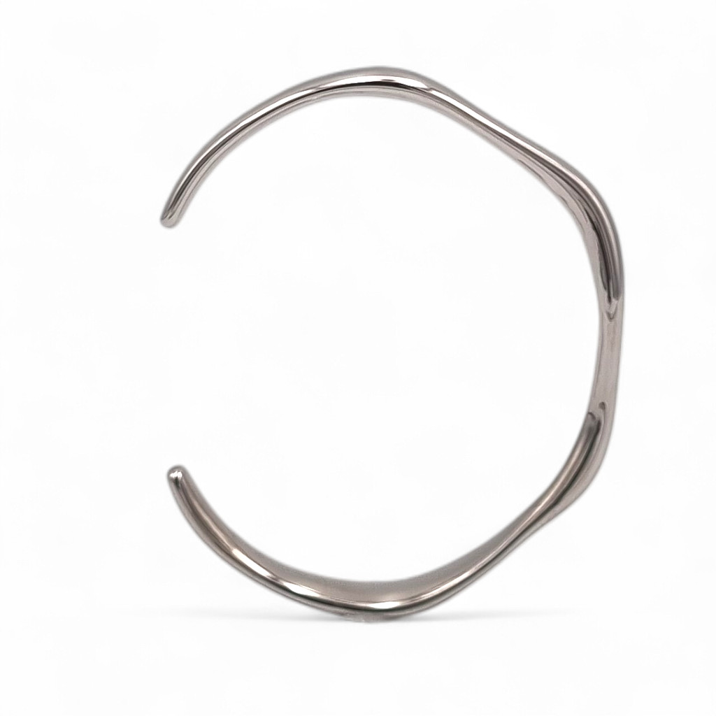 Polished to a mirror-like gleam and built from hypoallergenic, tarnish-resistant stainless steel, this bangle embodies comfort and longevity with style. Its minimalist form suits solo wear or layering — a timeless accent for lovers of quiet luxury.